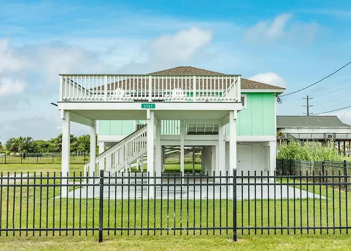 La villa Texas With A View Villa, de 78 m^2, ofrece alojamiento en Galveston, a alrededor de 20 minutos andando de The Kettle House y a 3 km de distancia del Galveston Island State Park. Durante su estancia en esta villa, los huéspedes pueden usar un balcón, una zona de estar, una plancha y tabla de planchar en las habitaciones.